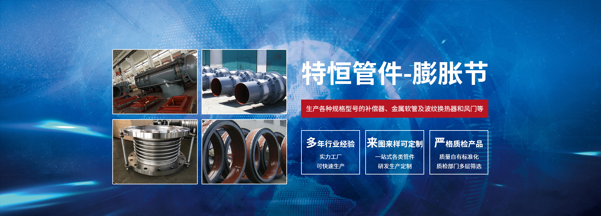 泰州市特恒管件有限公司坐落于風(fēng)景如畫的江蘇省泰州市,是專業(yè)從事設(shè)計、生產(chǎn)金屬、非金屬膨脹節(jié)、橡膠補償器、不銹鋼金屬軟管、風(fēng)門等的廠家。公司擁有各種先進生產(chǎn)、加工、檢測設(shè)備和強大的技術(shù)力量支持。我公司根據(jù)國內(nèi)先進的加工成型工藝、科學(xué)的管理體制、先進的工裝設(shè)備不斷充實、完善質(zhì)量保證體系,從而創(chuàng)造出高品質(zhì)的產(chǎn)品。聚科技精英、出優(yōu)質(zhì)精品、品質(zhì)卓越、信譽至上是我們的不懈追求。我公司愿以可靠的質(zhì)量和良好的信譽,“誠信、公正、求實、創(chuàng)新”的經(jīng)營理念與廣大用戶攜手合作,共創(chuàng)美好未來。我公司采用先進的標準進行設(shè)計、生產(chǎn)各種規(guī)格型號的補償器、金屬軟管及波紋換熱器和風(fēng)門等。廣泛應(yīng)用于電子、電力、核電、石化、冶金、儀表、儀器、航天、航 空、船舶、碼頭、建筑、食品、供熱等行業(yè),曾先后為多家大型企業(yè)提供各種型號的優(yōu)質(zhì)補償器,產(chǎn)品遠銷國內(nèi)外。我公司擁有一批專業(yè)技術(shù)人員和優(yōu)秀的售后服務(wù)人員,以確保客戶在選型號以及客戶在產(chǎn)品安裝、運行中出現(xiàn)問題時可以得到及時、專業(yè)、有效的處理,并為客戶在設(shè)計、安裝、運行中提供專業(yè)的技術(shù)指導(dǎo)。